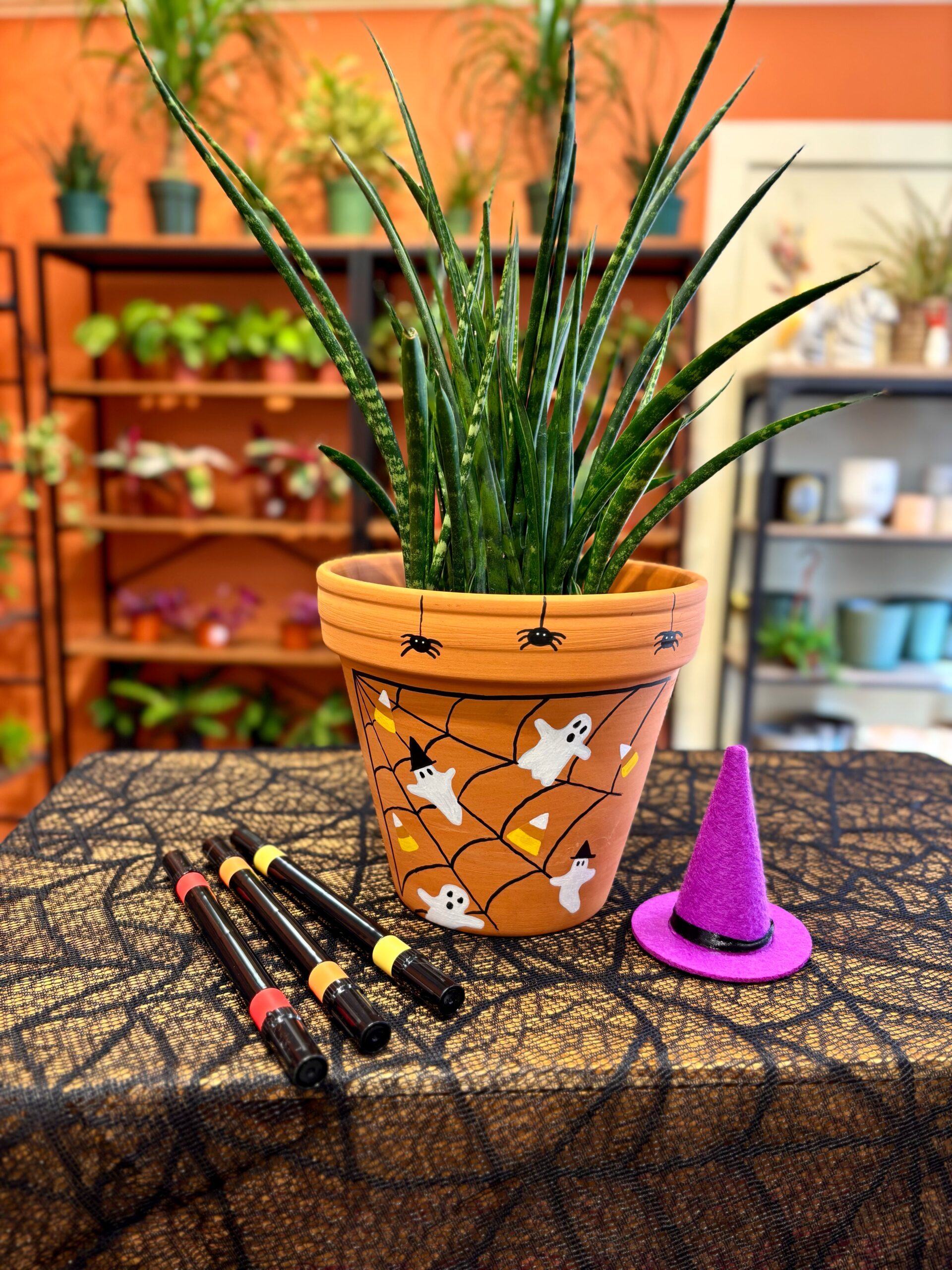 Design your one-of-a-kind 6″ terracotta pot while you sip on sangria and watch Hocus Pocus!